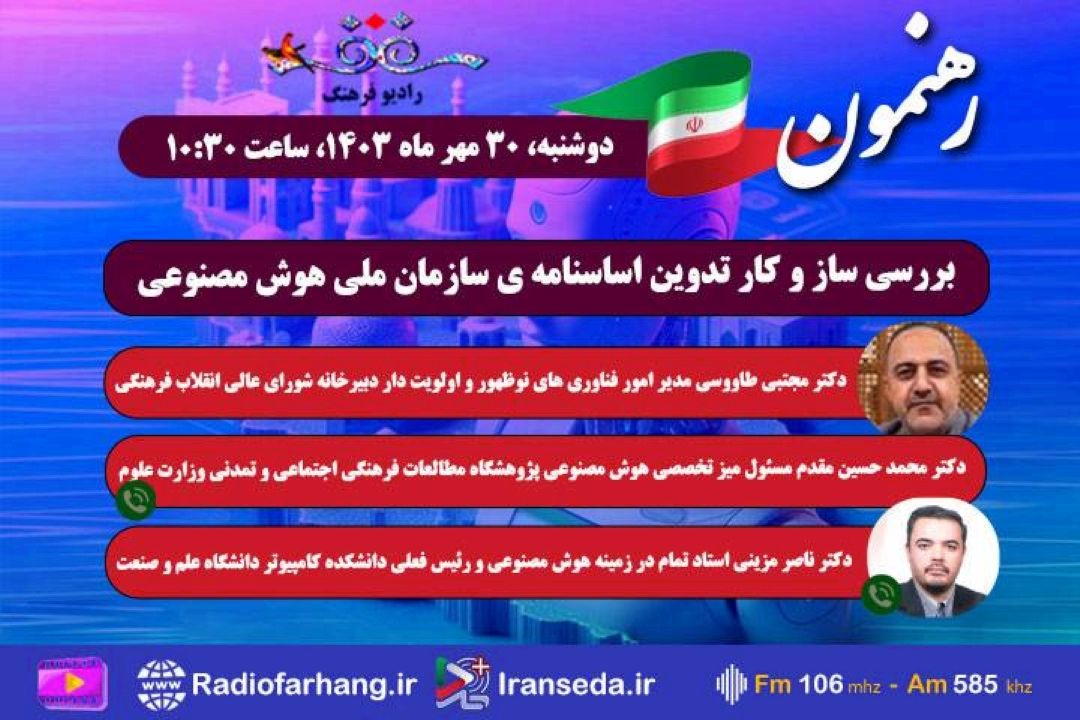 «هفت اقلیم» رادیو فرهنگ در مدار رسانه؛ از رونمایی سكوی ملی هوش مصنوعی تا گفتوگو درباره شكاف سواد رسانهای و فرهنگ دیجیتال برنامه «هفت اقلیم» یكشنبه 4 آبان، در رادیو فرهنگ با محور «رسانه، فناوری و انسان معاصر» روی آنتن میرود. 2 ماه پیش